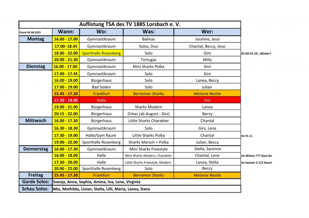 Folgende Angebote der TSA gibt es aktuell