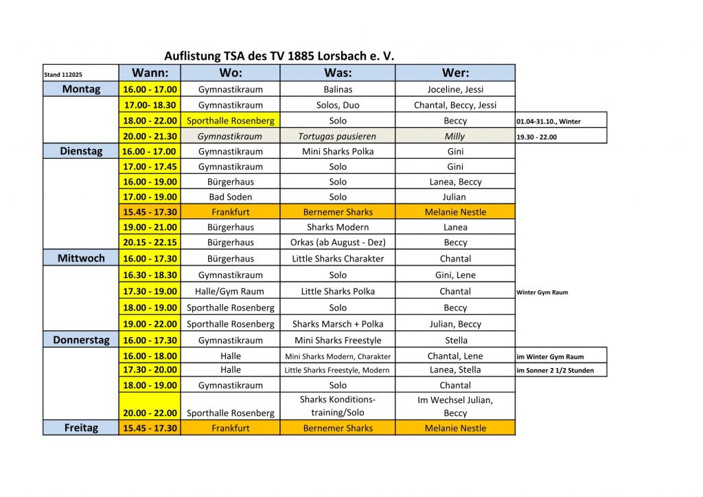 In der Tanzsportabteilung werden aktuell Garde- und Schautanz sportlich ausgeübt. Die TSA des TV 1885 Lorsbach e. V. ist beim Fachverband Deutsche Verband für Garde- und Schautanzsport (DVG-Tanzsport) angemeldet.